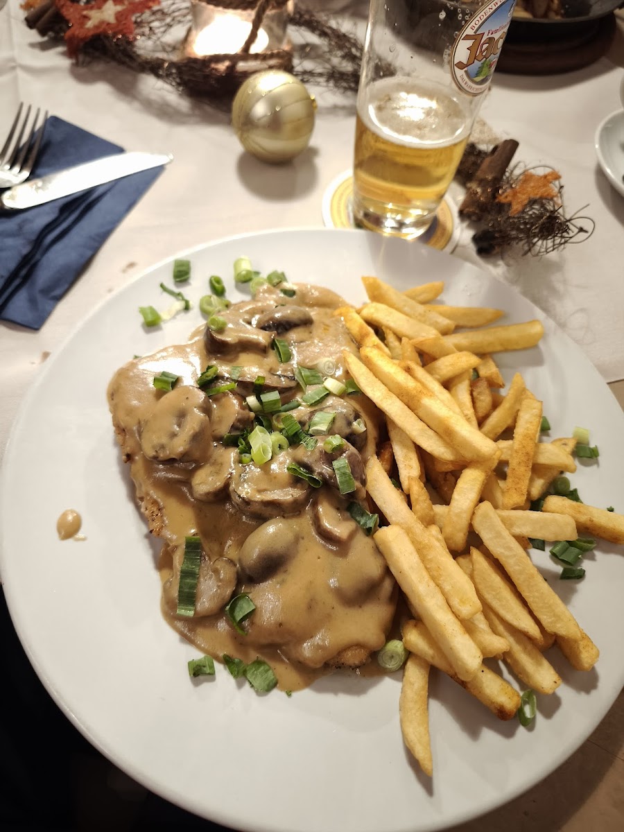 The menu at Schirra's Wirtshaus is a true reflection of the region’s culinary heritage, with each dish thoughtfully prepared using the finest ingredients. One of the standout offerings is their Schnitzel Mit Champignon Rahmsauce, a delectable breaded schnitzel topped with a creamy mushroom sauce. This dish perfectly balances the crispness of the schnitzel with the richness of the sauce, creating a comforting yet elegant meal. For those who love a bit of variety, the Schnitzel Wirtshaus Deftig Mit Zwiebel & Gebr Schinken is a must-try. It’s a hearty schnitzel topped with savory onions and crispy bacon, delivering a robust and satisfying flavor profile.